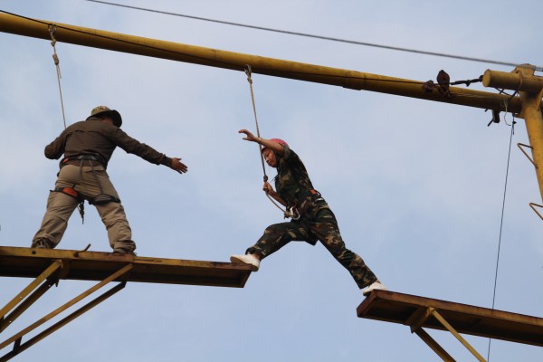在拓展訓(xùn)練的過程中,大學(xué)生們精神飽滿、積極參與,充分展現(xiàn)了江泉人的風(fēng)采。伴隨著緊張的集合哨聲,訓(xùn)練課程正式開始,大學(xué)生們穿著整齊統(tǒng)一的訓(xùn)練服,步伐整齊,喊著響亮的口號,將青春的色彩點綴了整個訓(xùn)練基地。天氣炎熱,但大學(xué)生的激情不減,烈日下進行著緊張的訓(xùn)練,課程緊湊、要求嚴(yán)格,每天的訓(xùn)練都在整齊洪亮的餐訓(xùn)聲中結(jié)束,“軍井未掘,將不言渴;軍灶未開,將不言餓;雨不披蓑,雪不穿裘;將士冷暖,永記我心!”